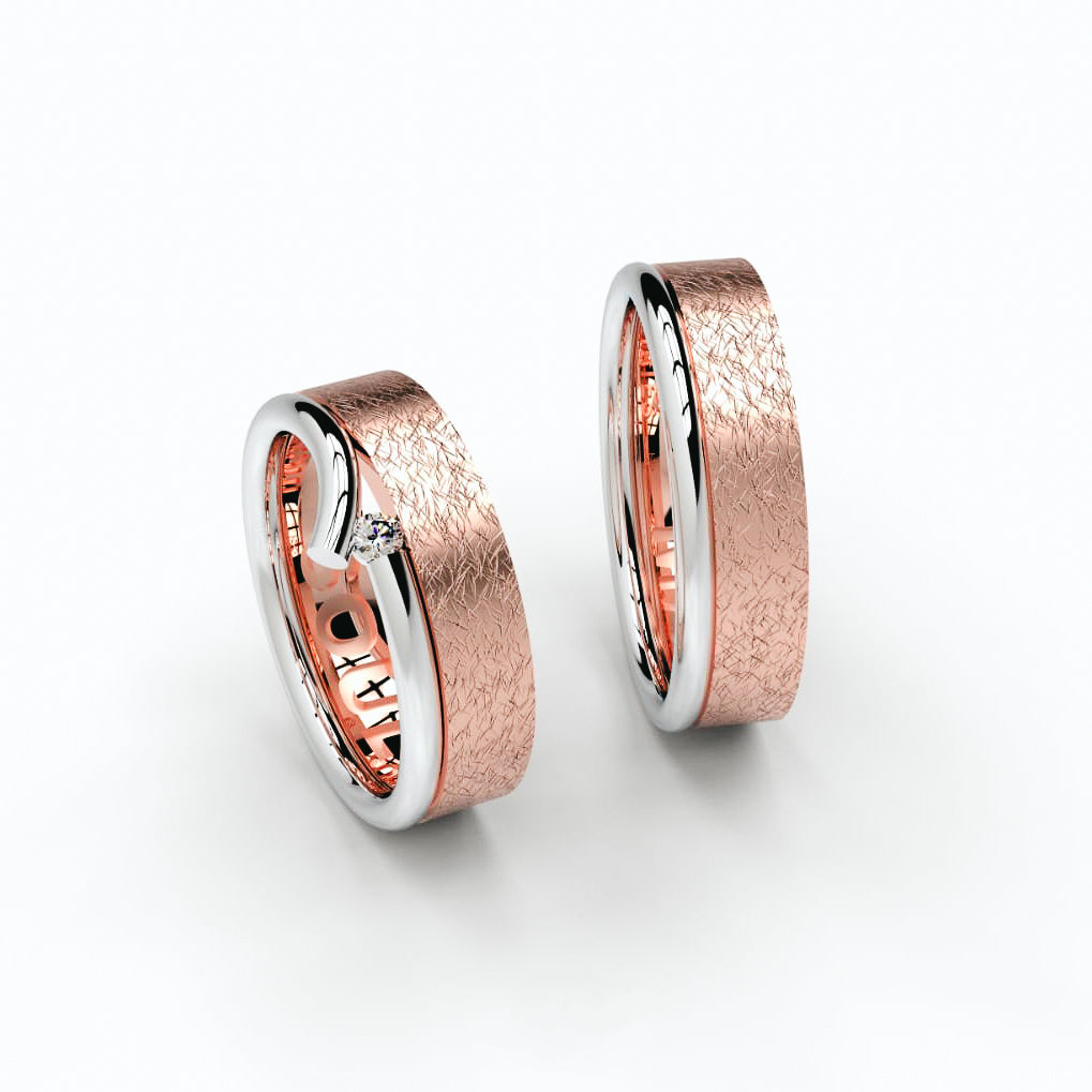 Este modelo de alianzas es bicolor están realizados en oro blanco y oro rosa respectivamente. Tienen un ancho de 3,6 mm.