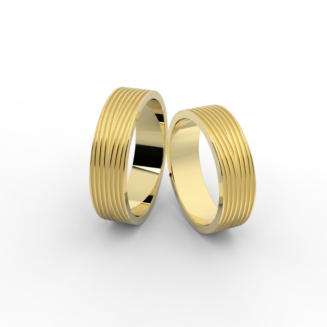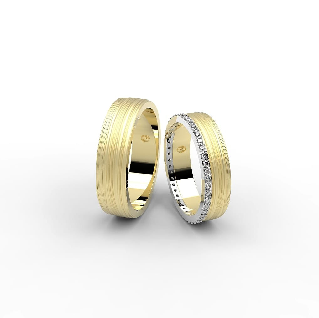 Este modelo de alianza es bicolor pero también se puede hacer todo del mismo color de metal. Está formado por dos aros, uno con forma recta y plana en la parte superior y otro con curva. Tiene un ancho de 6,3 mm.