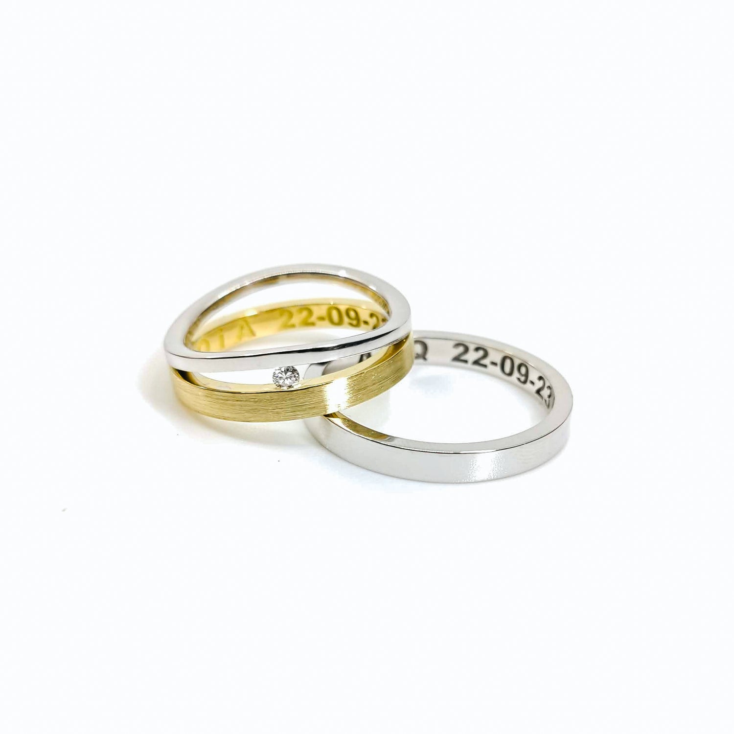 Este modelo de alianza es bicolor pero también se puede hacer todo del mismo color de metal.