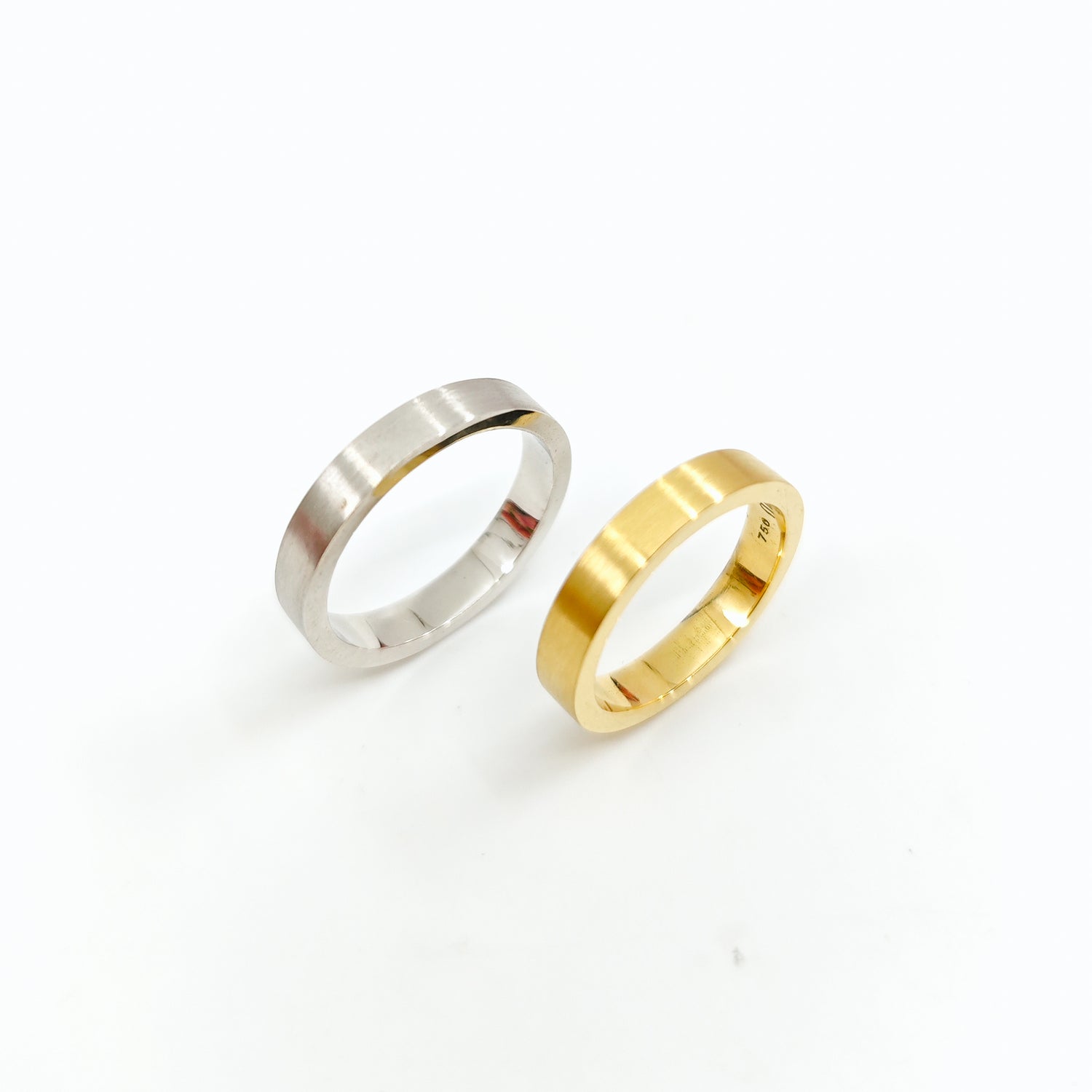 Este modelo de alianza tiene una forma plana en la parte superior y en los laterales. Tiene un ancho de 4 mm.