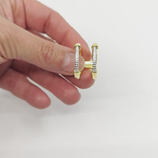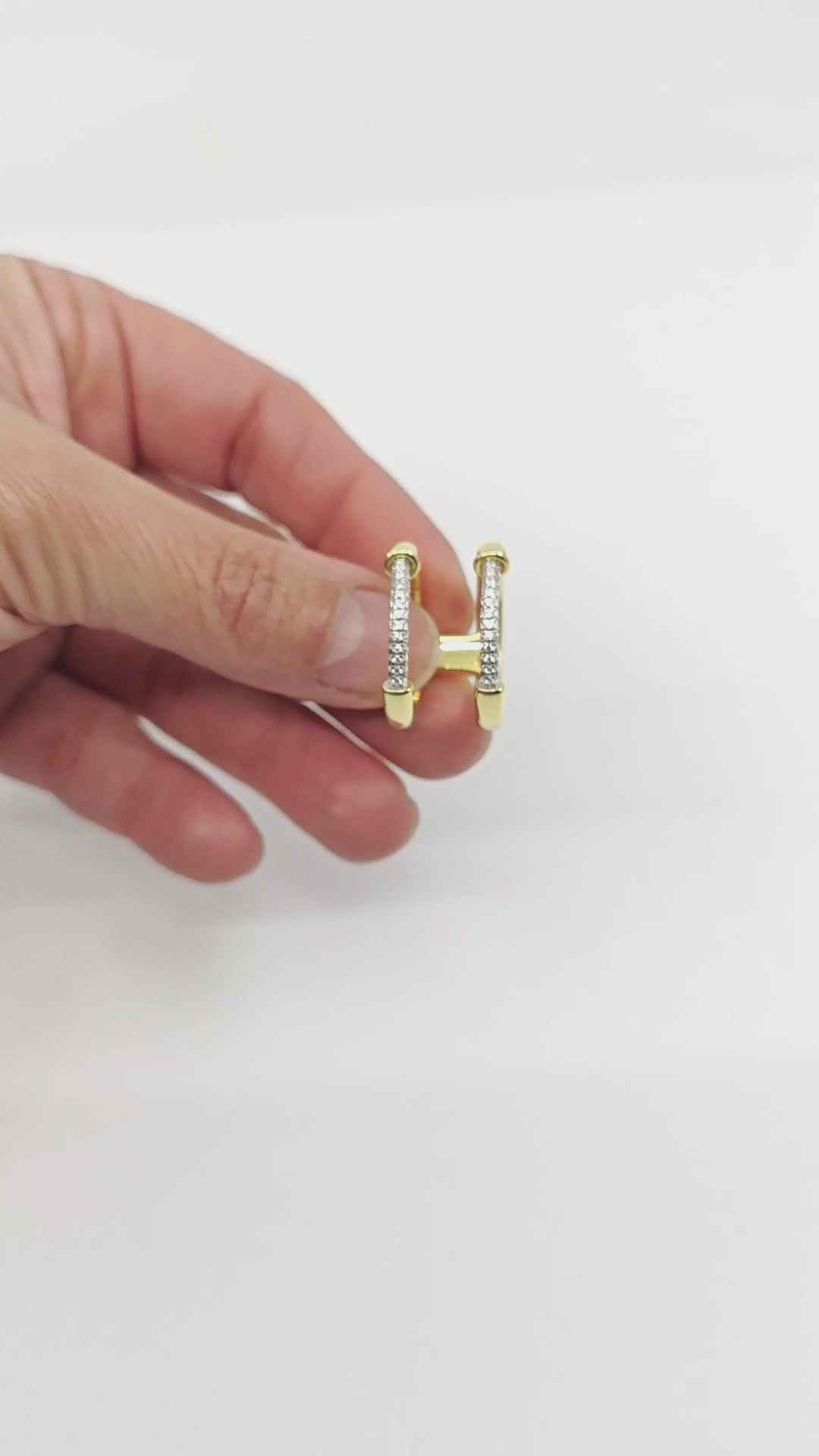 Anillo de plata de ley bañado en oro. Combina el brillo cálido del acabado dorado con un delicado tramo superior engastado en pavé de circonitas. El contraste entre la superficie pulida y la textura luminosa de las piedras aporta profundidad y carácter a una pieza equilibrada y sofisticada.