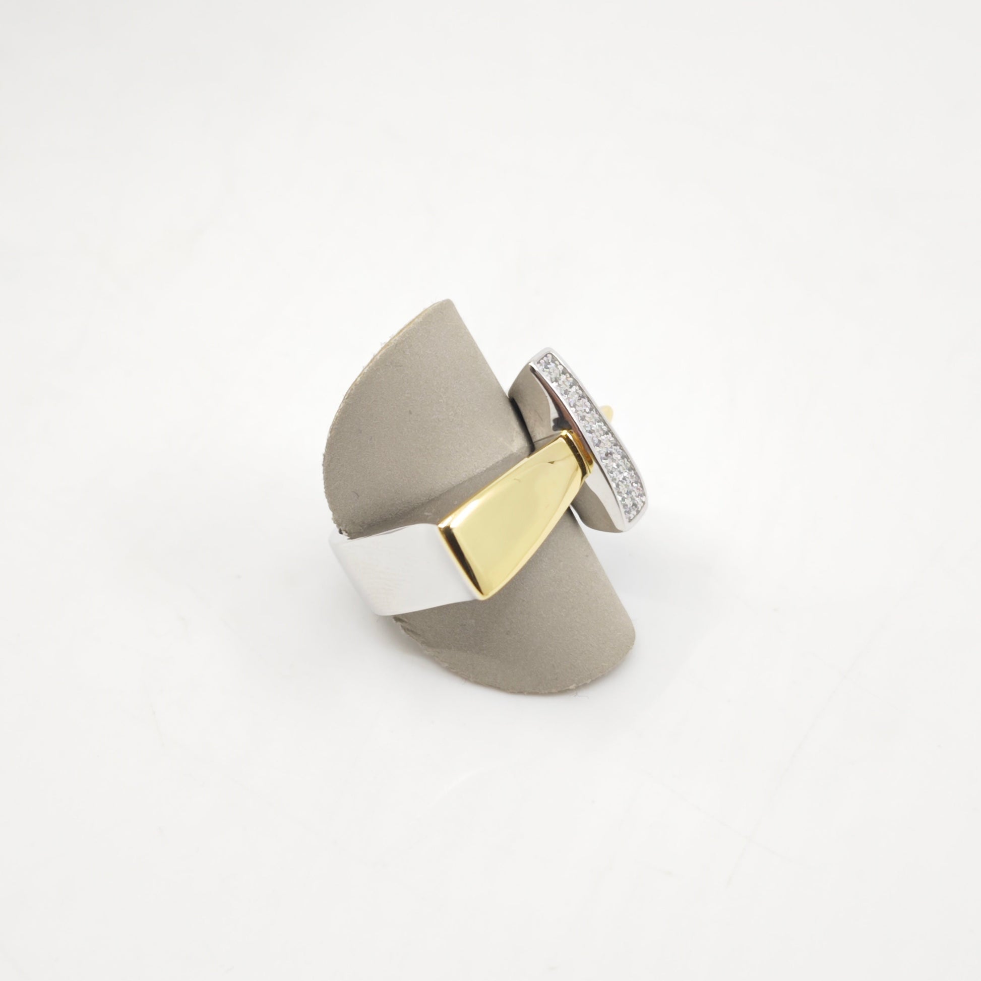 Hecho con plata de ley y baño de oro de 18 kts en la parte superior. Combinado con una parte de circonitas creando un bonito contraste.