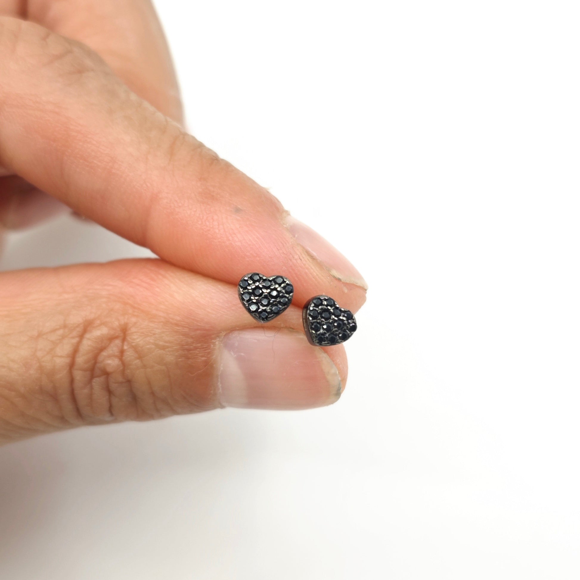 Ilumina tu look con estos pendientes en forma de corazón, un diseño moderno y sofisticado. Su acabado en tono oscuro con pequeñas circonitas negras aporta un toque elegante y contemporáneo, perfecto para cualquier ocasión.