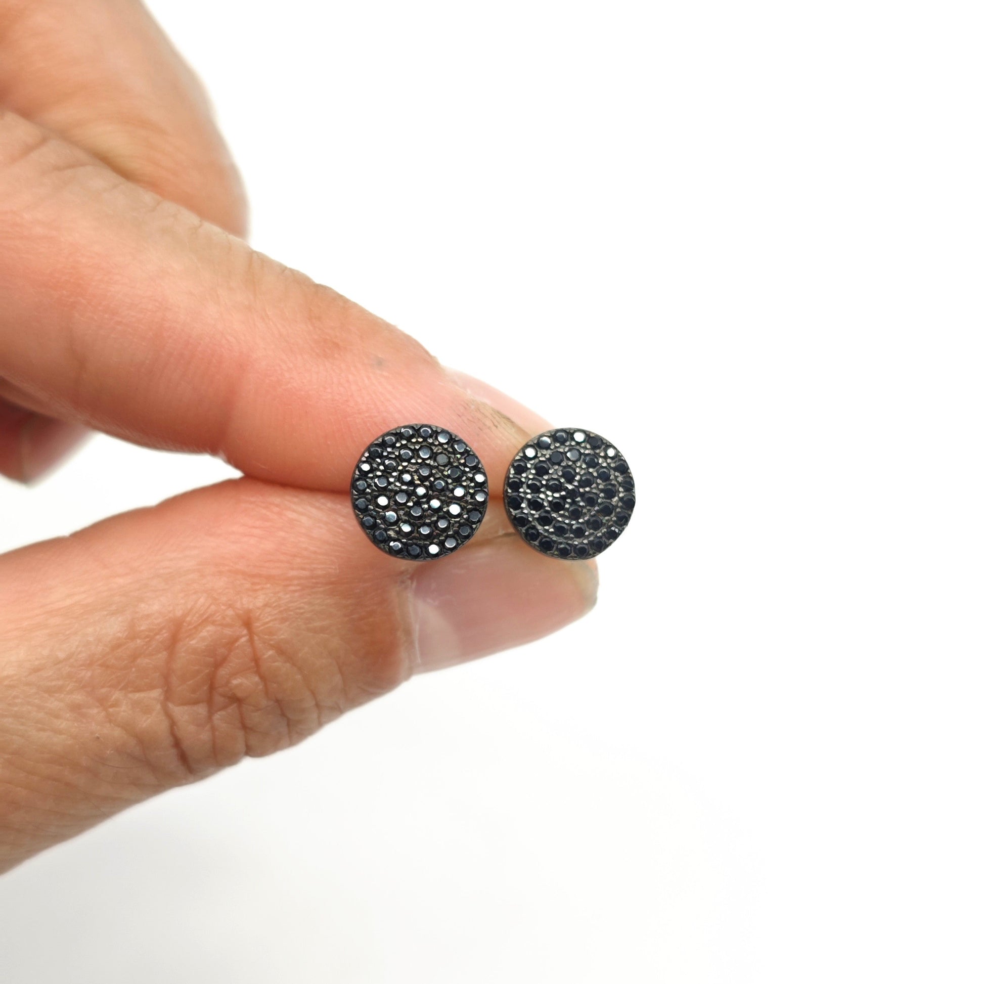 Estos pendientes tipo botón están elaborados con un diseño circular pavimentado de circonitas negras brillantes, que aportan un toque cómodo y contemporáneo a cualquier look. Su tamaño compacto los hace ideales tanto para el día a día como para ocasiones especiales.