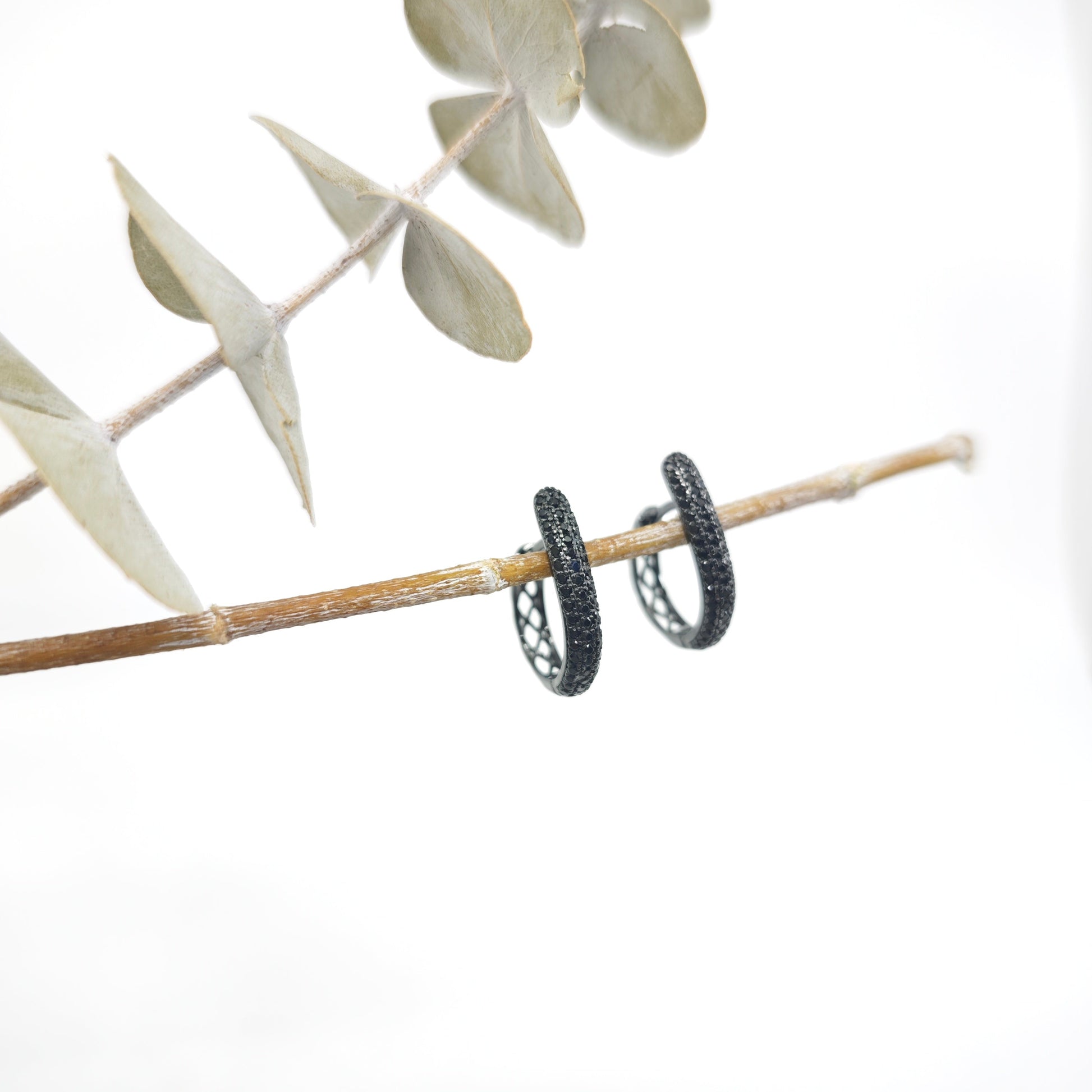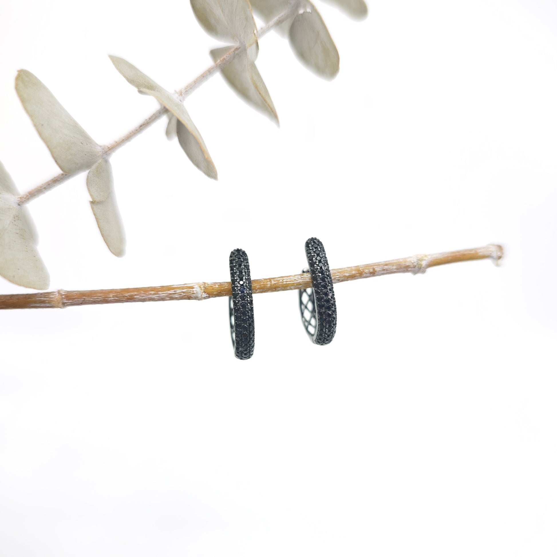 Elaborados con plata de ley bañada en rutenio y circonitas negras.