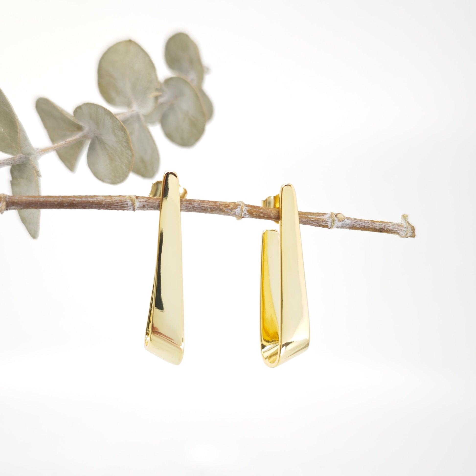 Dale un toque de distinción a tu estilo con estos pendientes de oro de diseño geométrico, creados para resaltar la belleza en la simplicidad. Su silueta alargada y pulido espejo reflejan la luz con cada movimiento, aportando un brillo sutil y sofisticado a cualquier look.