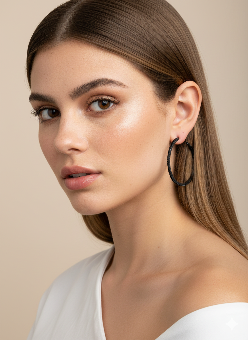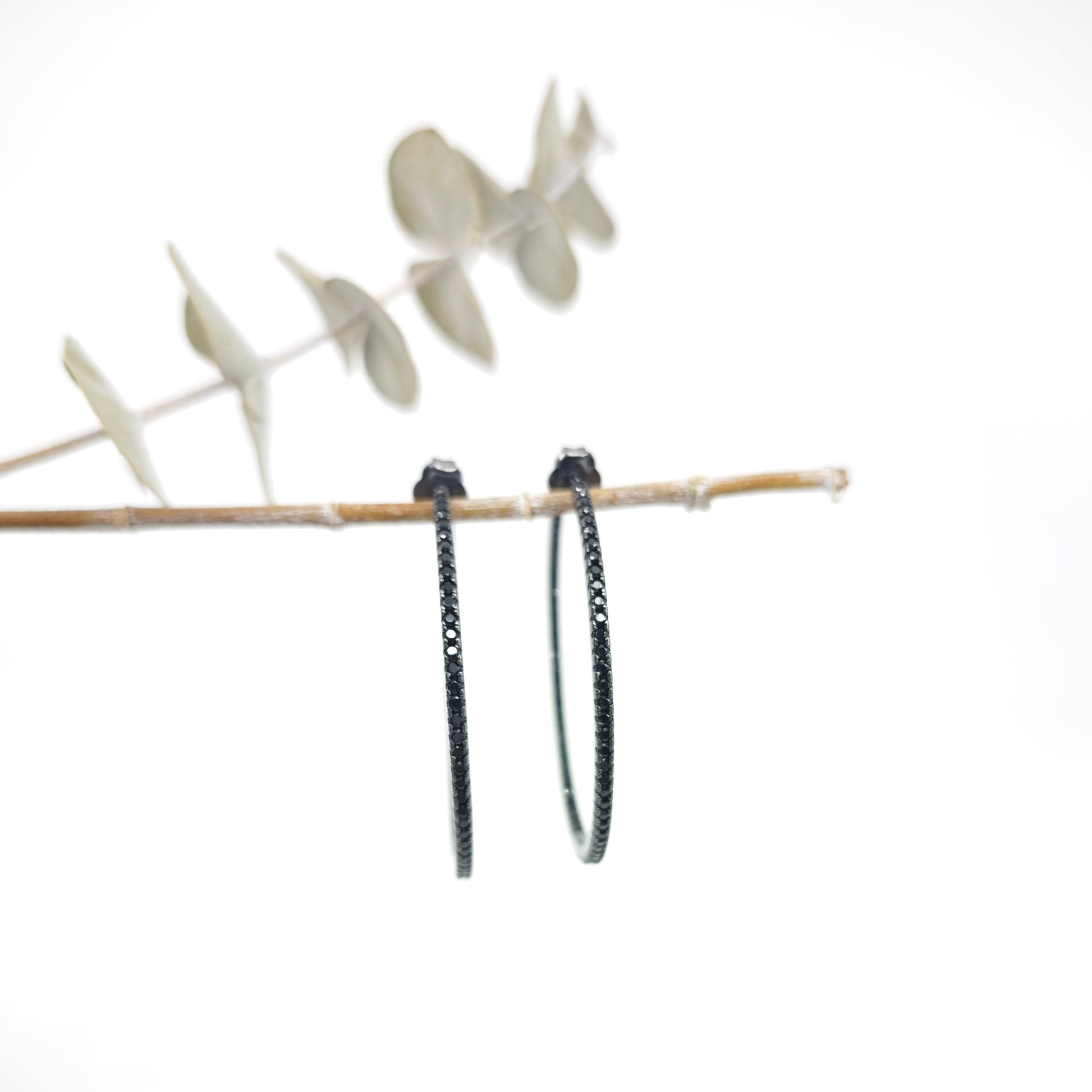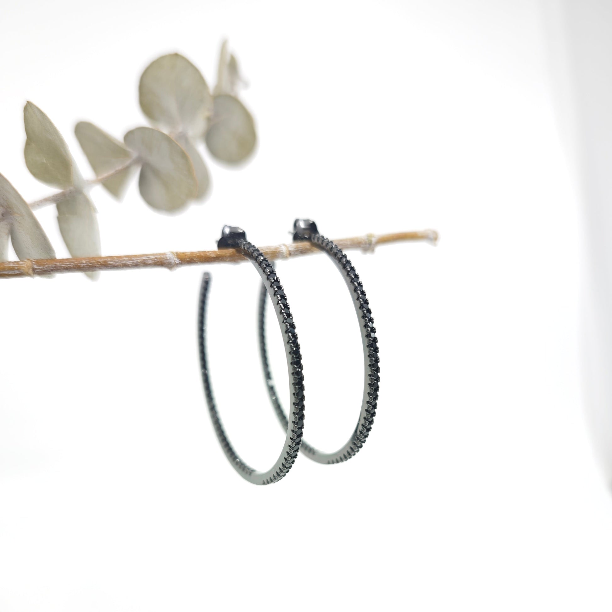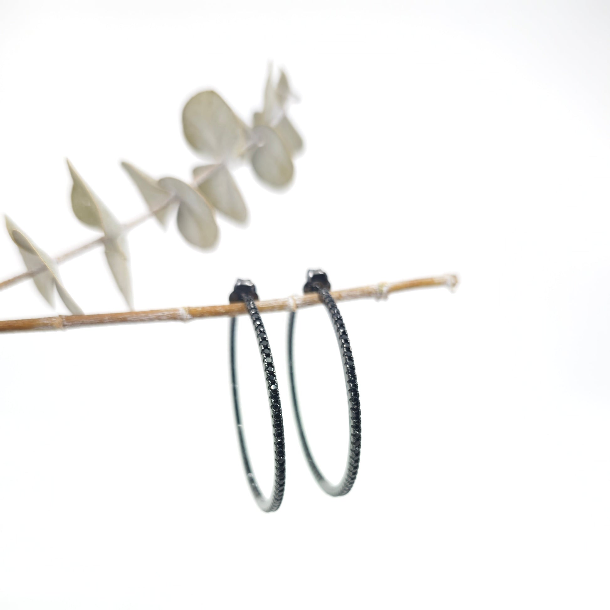 Elaborados en plata de ley bañada en rutenio y con circonitas negras en la parte exterior i interior.